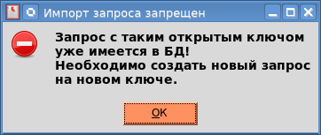 Просмотрев запрос и убедившись в его правильном заполнении, можно нажимать кнопку «Import» для занесения его в базу данных. Сразу отметим, что при попытке повторного внесения запроса в БД УЦ будет выдано сообщение: